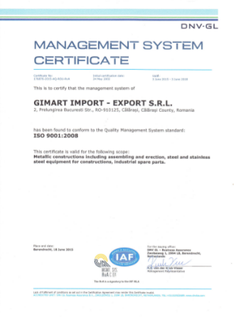 Gimart confectioneaza utilaje si piese de schimb pentru industria navala, folosind tehnologii de ultima ora si respectand cerintele Sistemului de Management de Mediu.