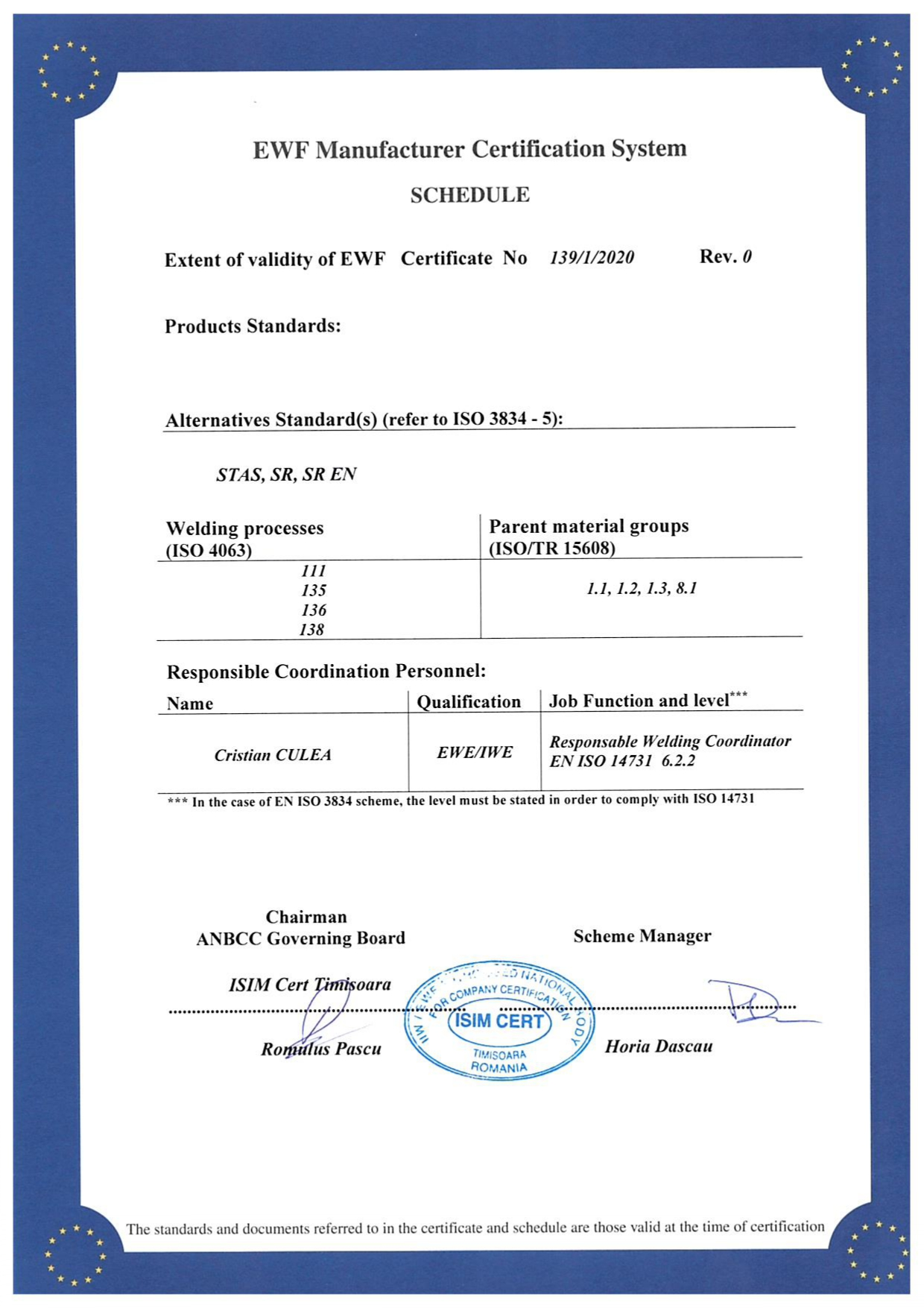 Fiind o companie transparenta, tinem sa prezentam certificarile si autorizarile acordate.